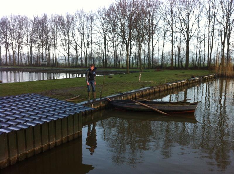 hout gesjouwd, een geul gegraven om het terras te kunnen herstellen,