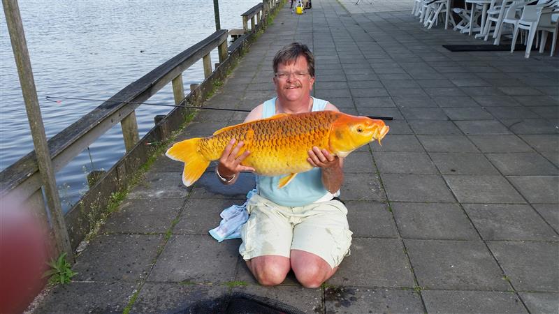 Deze week kwam de klap op de vuurpijl: de goudkarper !!! Gevangen met de vaste stok, 18/00 boven en 16/00 onder. Knap gevist Eddy, welkom bij 't Stekelbaarsje.