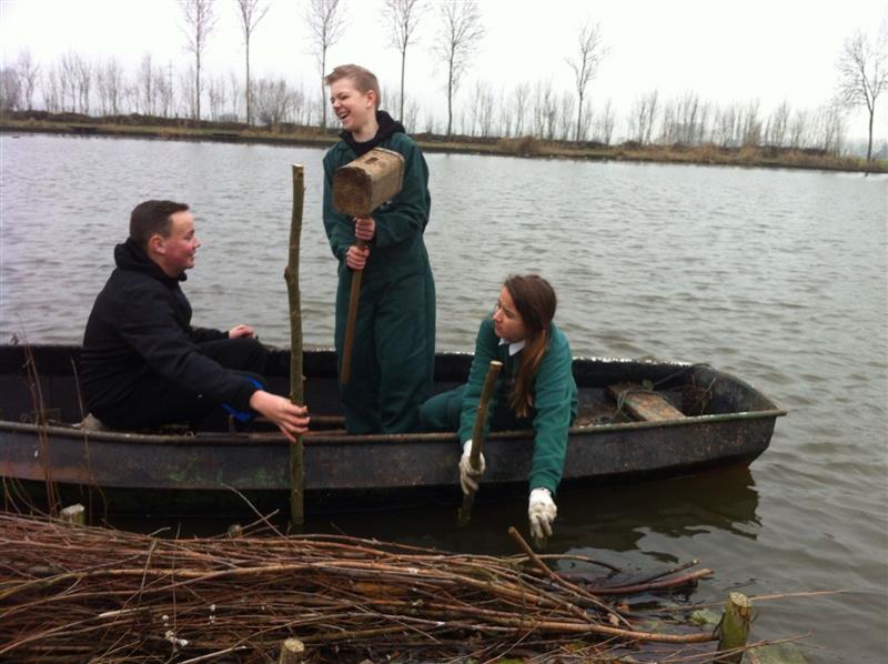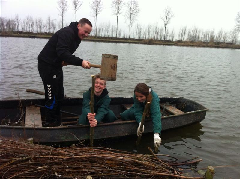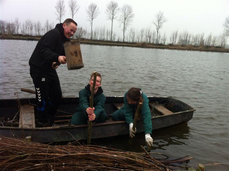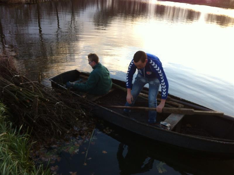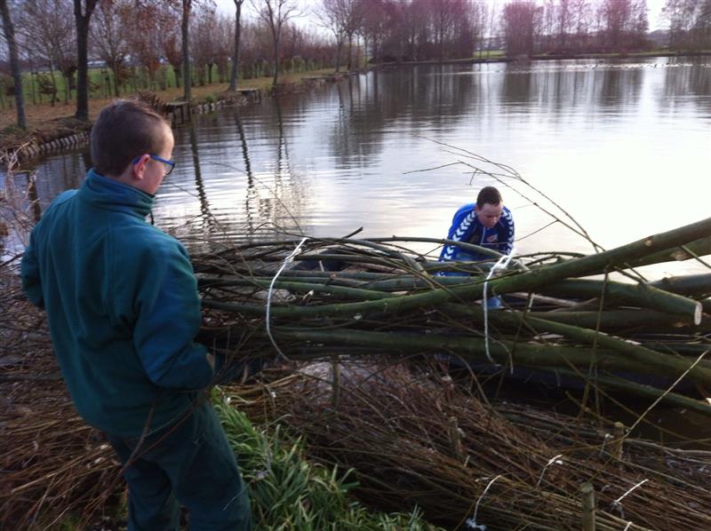 - Na de “roeiles” aangekomen bij de plek, waar de schuilplaatsen voor de vissen worden verbeterd.