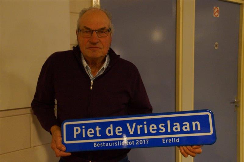 Bij het afscheid van Piet de Vries als bestuurslid werd hij geëerd met een