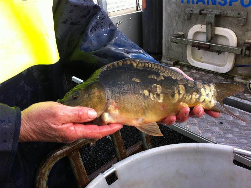 Dinsdag 16 januari heeft Piet Kalkman 147 karpers van ruim 1 kilogram gemiddeld afgeleverd. De karpers zwemmen nu in de kleine put.