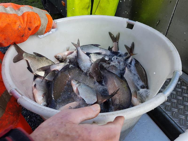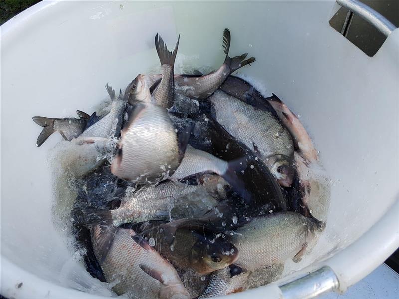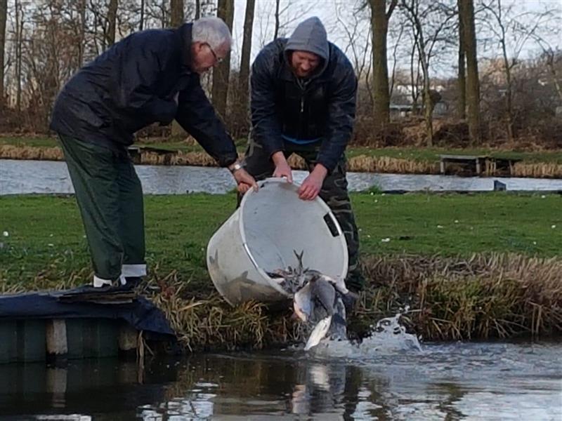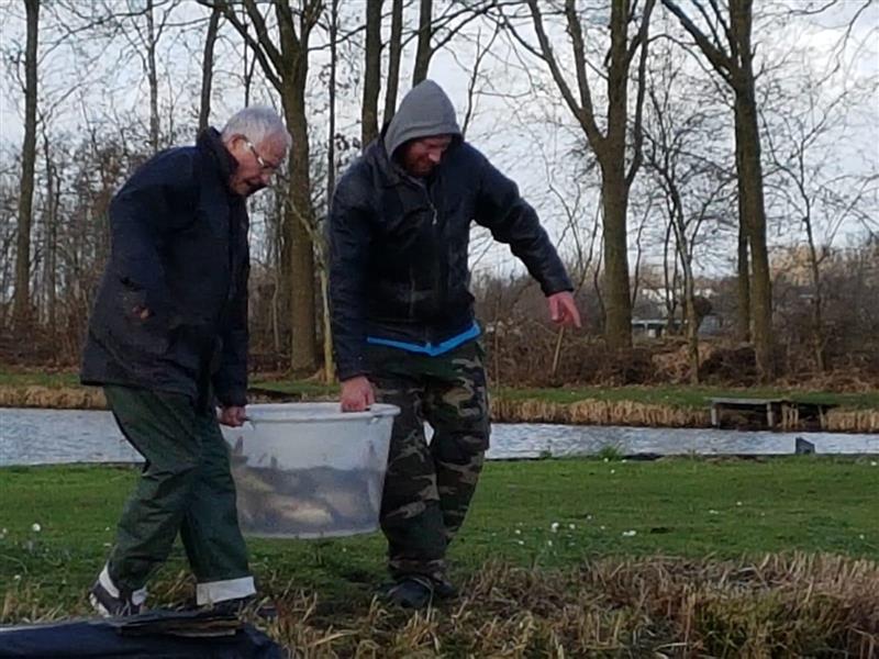Tussen de brasems van diverse afmetingen ook een aantal dikke voorns, een enkel snoekbaarsje, een enkele karper en een snoekje. Al met al een prachtige hoeveelheid om aanstaande zondag aan de slag te gaan. Op bijgaande foto’s ontbreekt Eddy. Hij was wel degelijk aanwezig, alleen........ iemand moet die foto’s maken!