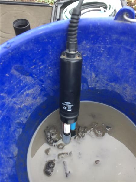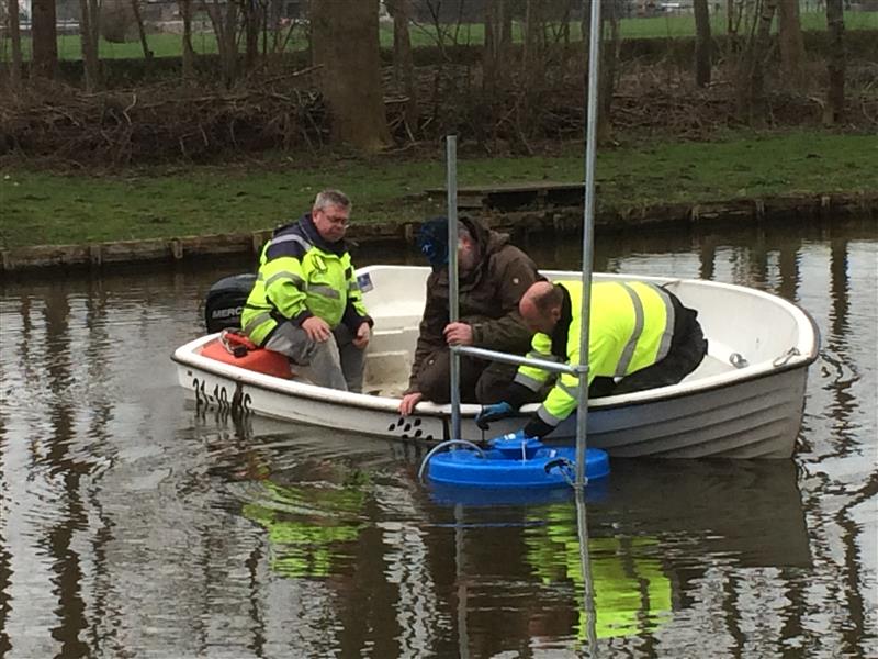 Donderdag 18 maart waren de mensen van het karperproject op de put. Gerard de Laak en Gerrit van Eck van SVN en uit België kwam de leverancier van de pomp Peter Coene. Peter is zeer deskundig op het gebied van waterkwaliteit en heeft onderzoek gedaan naar het zuurstofgehalte in het water (10,0 mg/L, prima!) en naar de kwaliteit van het slib. (ook prima in orde)